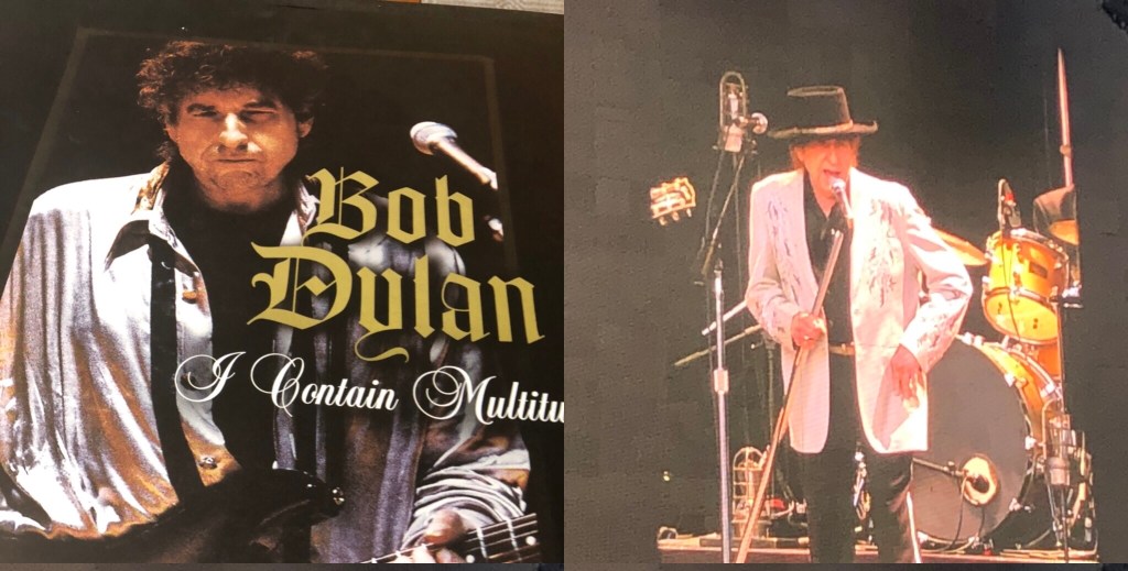 Ja, «multitudes», indeed. Og det er vel det Dylan forteller oss her. Vi kan ha mange ansikter, Dylan selv – eller Robert Zimmerman som han også het – sa en gang for lenge siden «I have got my Dylan mask on».