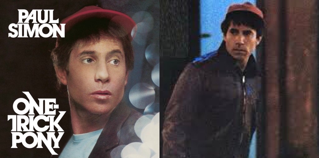 Filmen «One-Trick Pony» handler om en noe mislykket folk-/rockmusiker som bare har ett talent. Hovedpersonen, JonahLevin, ble spilt av Simon selv. Ellers er bandmedlemmer og Lou Reed blant skuespillerne. Jeg så filmen for mange år siden, og husker den ikke som spesielt minneverdig. Det er sagt om karakteren Jonah Levin at han har mye til felles med Simon selv, og at karakteren utstråler en usikkerhet som også Simon har følt på, selv om Paul Simon selvfølgelig opplevde langt større suksess både før og etter «One-Trick Pony» enn det Jonah Levin var i nærheten av: