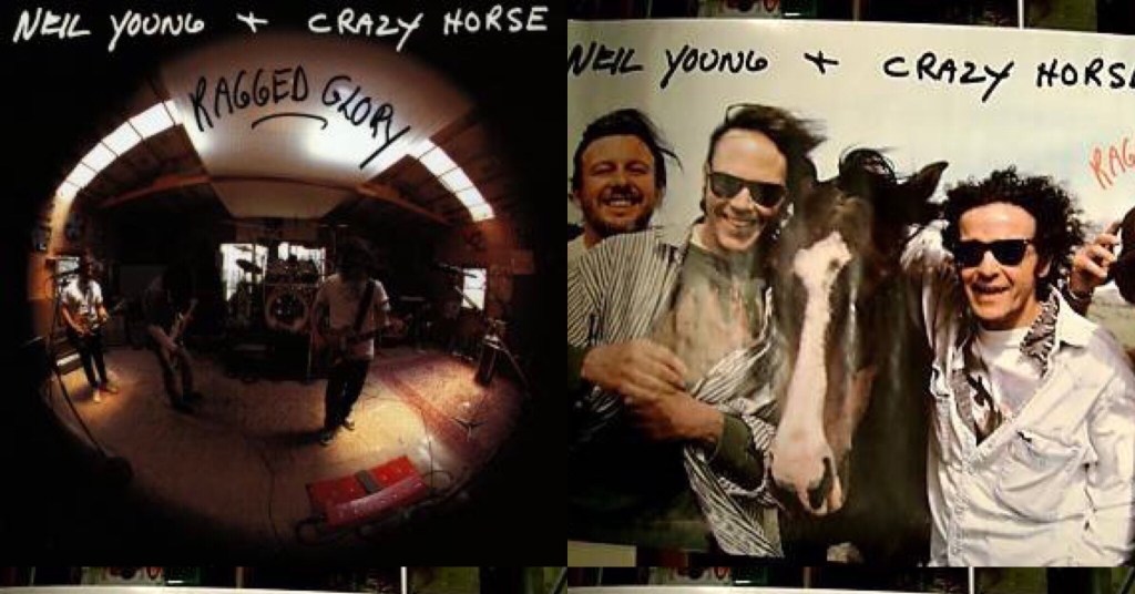 Da var det omsider klart for Crazy Horse igjen. Ikke at det var så lenge siden sist, men det hadde rent mye vann i bekken siden 1987. Verdens tredje beste garasjeband. Nå med Billy Talbot (bass), Ralph Molina (trommer) og Frank Sampedro (gitar) foruten Neil selv. Crazy Horse og produsent David Briggs var ikke overbegistret over at Neil ville spille inn plate i hans «Country Home», ranchen: «Da skal han leke med modelljernbanen sin hvert tiende minutt». Men resultatet: Pur Ragged Glory!