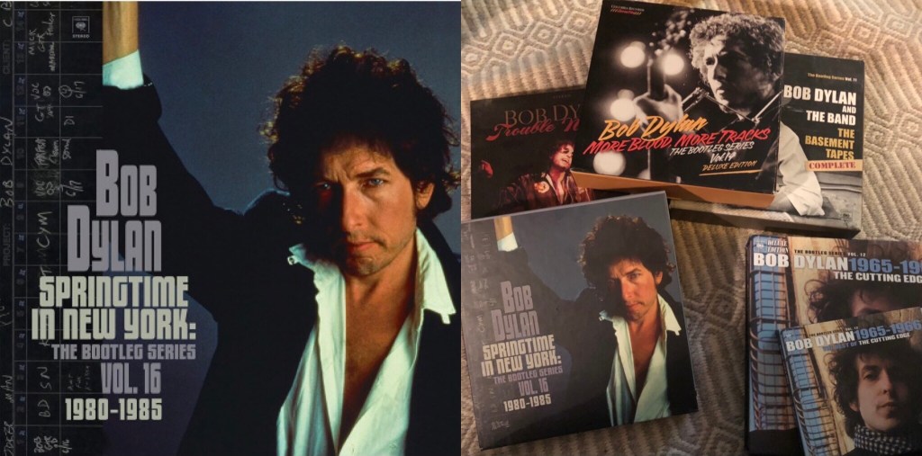 Jeg kjøpte Bob Dylans Bootleg Series Vol. 1–3 i begynnelsen av 1990-årene omtrent da den ble gitt ut. Jeg hadde på ingen måte oversikt over alle Dylans utgivelser– jeg har det knapt enda. Men flere av låtene var mye bedre enn de jeg så langt hadde hørt med Dylan. Særlig likte jeg Vol 3. Åttitallet lød overraskende friskt, ja jeg syntes låter som «Something Gotten Hold Of My Heart», «Angelina», «When The Night Comes Falling From The Sky», «Tell Me» og «Blind Willie McTell» fra tidlig 1980-tall var mye bedre enn dem man fant på de originale platene. Senere har det kommet en rekke utgivelser i bootlegsserien, vi er nå oppe i Vol. 16. Essensielle konsertopptakt fra Manchester i 1966 og fra «The Rolling Thunder Revue» på midten av 1970-tallet. Noen dypdykk i enkeltperioder, som 1965–1966, rundt 1970, «Blood On The Tracks» (1975), den kristine perioden (1979–1981) og perioden fra 1989 til 2006 med den glimrende boksen «Vol. 8: Tell Tale Signs».