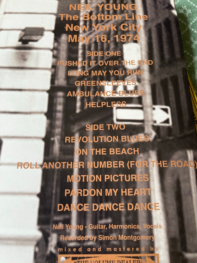 Men generelt kan jeg ikke fortelle deg så mye om forskjellene på opptakene. Kanskje kan mine innkjøp av disse opptakene sammenliknes med at jeg for mange år siden kjøpte et utall CD’er med liveinnspillinger fra de siste leveårene til Townes Van Zandt. Men forskjellen på en god og dårlig konsert var nok langt større for Townes enn Neil. Uansett trives jeg utmerket med å høre sangene noen ganger til. Så får jeg spare dypdykket og forskningen til jeg blir pensjonist. Kanskje trenger du dem ikke, men hva var der Bob Dylan sang: «An’ she says, “Your debutante just knows what you need, But I know what you want”».