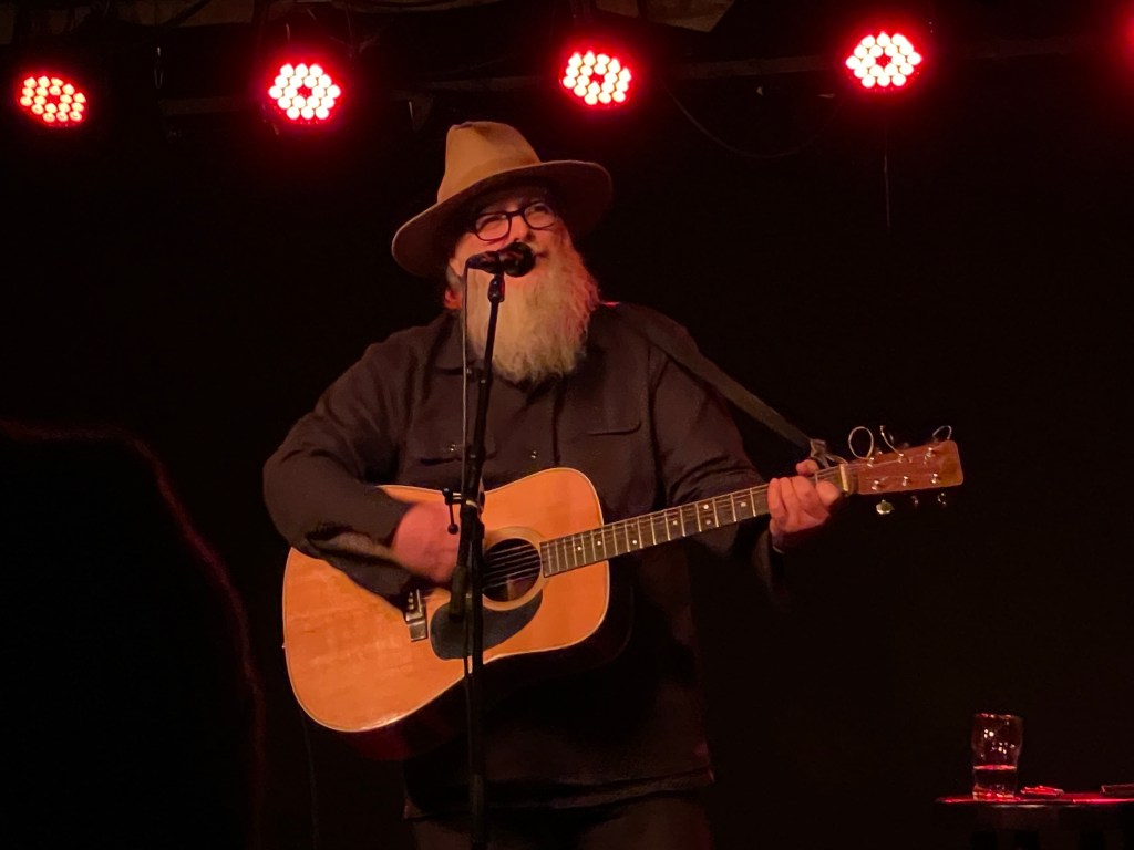 I 2014 ga Otis Gibbs fra Indianapolis i USA ut folkalbumet med den betegnende tittelen «Souvenirs Of A Misspent Youth», ei plate som sakte og sikkert vokste på meg, og der kjempelåter som «Ghosts Of Our Fathers» og «Gun In My Hand» sendte den helt opp mot toppen blant mine favorittplater det året. Albumet «Joe Hill’s Ashes» (2010) er kanskje like bra. Og best av dem alle er kanskje det mer rockpregede «Hoosier National» fra 2020. Vi fikk i kveld servert sanger fra dem alle. Men nesten like viktig som sangene er historiene Otis forteller mellom låtene. Historier som får en til å le og bli varm om hjertet på en gang. Historiene og låtene glir sømløst over i hverandre. Otis var treplanter – han var tilstrekkelig tom i hodet og sterk i kroppen til å få jobben. Mon det!. Han ble bestevenner med en kollega. Vennen døde vel 30 år gammel. Jeg skal ikke forsøke å gjenfortelle, men i løpet av de minuttene Otis forteller og synger blir vi glad i vennen hans.