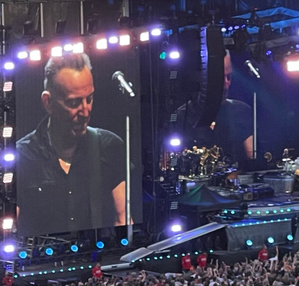 Velregissert. Kanskje har jeg hørt enkelte av låtene i bedre versjoner. Lyden var ikke alltid 100 prosent, og i perioder litt høy under tribunetaket. Pirk! Over tre timer til tross: Konserten var velregissert med sine ulike partier og fremstod strammere enn på i hvert fall enkelte tidligere konserter jeg har vært på med mannen. Bruce selv holder koken. Kanskje går han bare raskt opp og ned trappa som hjelper han ned til publikum helt framme underveis. Tidligere løp han. Men formen til den 73 år gamle mannen må være bra! Han er heller ikke redd for å trøkke til i vokalen og lar den av og til briste. Det høres likevel helt riktig ut. Rock er ikke perfekt skjønnsang. Derfor tillater jeg meg å brøle med som verst jeg kan på flere av låtene – unnskyld til dere rundt meg!