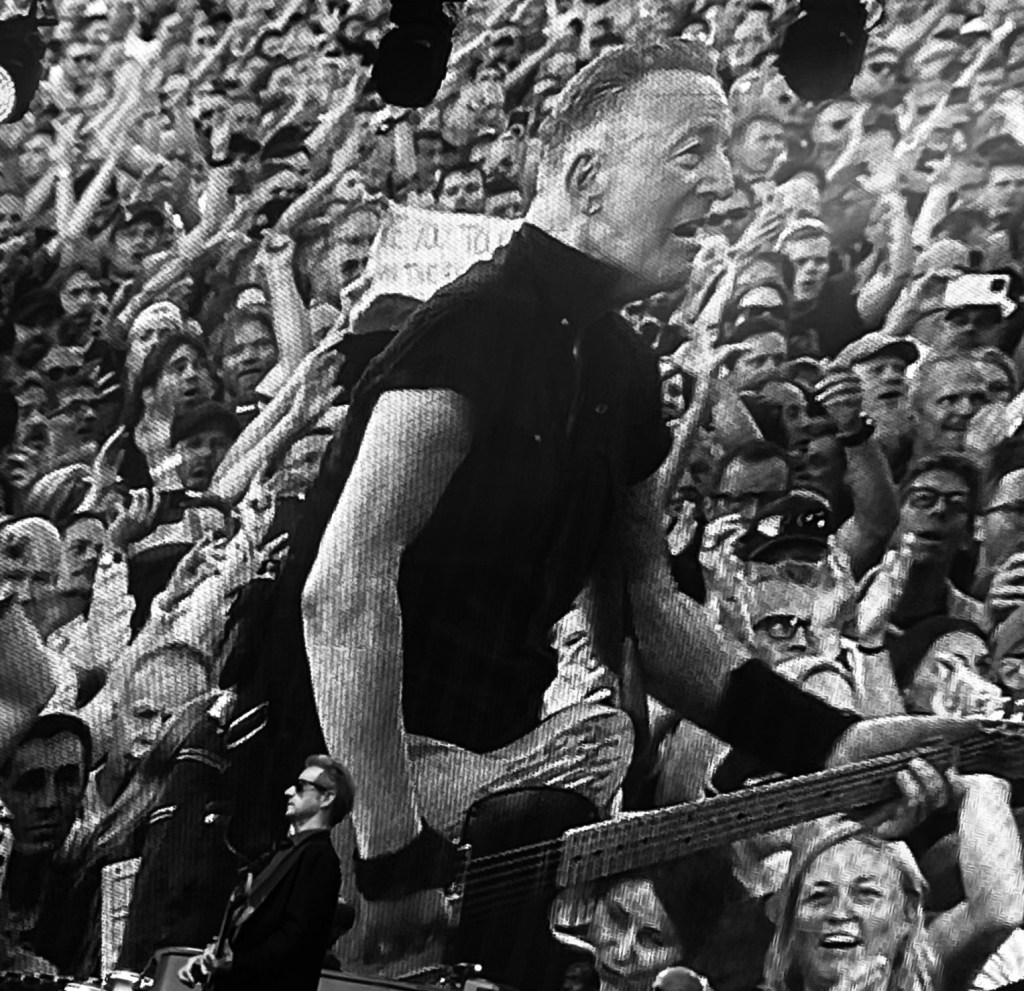 Alvor. Det utvidede E Street Band er nemlig et stort maskineri, og i et svakt øyeblikk da publikumsfrieriet var på det sterkeste, tok jeg meg selv i å tenke at nå ble det vel mye av et underholdningsmaskineri. Som kona sa: «Det var på denne konserten vi skulle stått helt fremst». Men skal man få flest mulig av de 50 000 i publikum med seg, må man bygge på den rutinen som er opparbeidet gjennom femti år. Og vi fikk de fire låtene fra «Letter To You». Tre av dem med tekster på storskjerm oversatt til norsk, som sammen med en monolog før sangen «Last Man Standing», understreker alvoret i dem, et alvor knyttet til at vi blir eldre, flere «farvel» enn «hallo», døden som setter livet i perspektiv. På to av dem, «Last Man Standing» og konsertens aller siste låt «I’ll See You In My Dreams», står Bruce nesten alene med gitar og munnspill– bare avbrutt av en nydelig trompetsolo – og jeg tenker at dette kan han bedre enn noen annen. Temme 50 000 mennesker med enkle virkemidler.