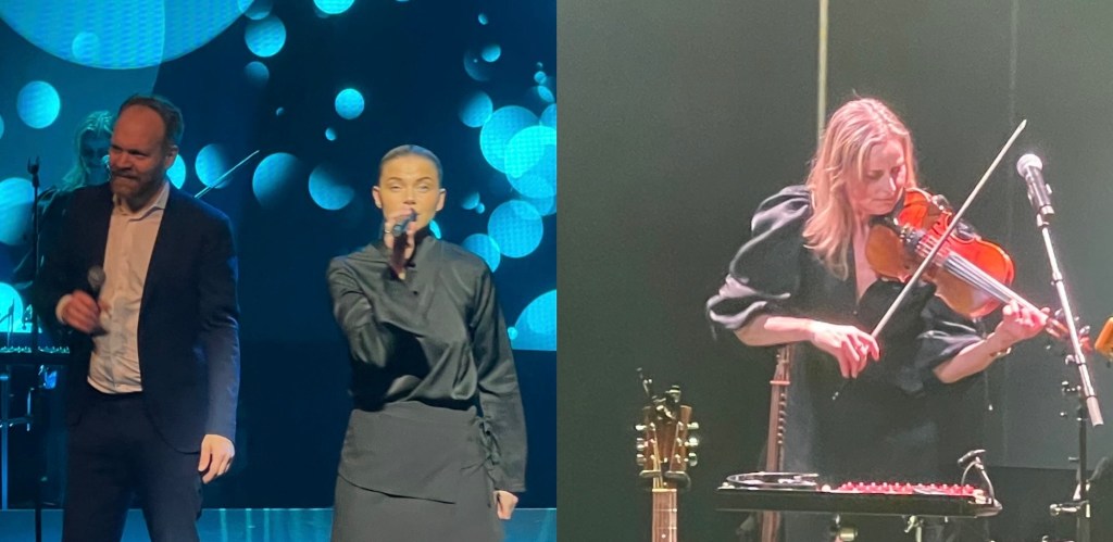 Bandet! Ja, det musikalske sitter som et skudd hele veien. Hanna Solemdal Idsø er den store stjerna deler av kvelden. Som hun synger. Timingen er strålende hele veien mellom Jon Niklas poenger, og Hanna og også pianist Ole Aagenæs som er innom på vokal med jevne mellomrom. Andreas Haga beveger seg mellom ståbass og elektrisk bass med den største selvfølgelighet og får også lov til å få inn en puncline. Lise Sørensen må være av landets dyktigste fiolinister og satte et elegant preg på forestillingen.