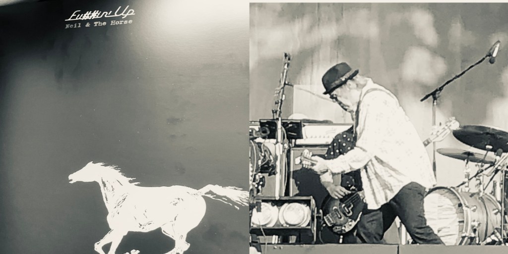 Han kommer kritikerne i forkjøpet denne gangen, Neil Young. Han vet at mange ikke ønsker å følge med på alt han gir ut for tiden. Mange har bestemt seg på forhånd for at dette gidder de ikke mer av. Det synes jeg er helt greit. Jeg synes likevel det er nokså uangripelig og særdeles hyggelig at en artist av Neil Youngs kaliber og som har fylt 78 år, ønsker å dele musikken han lager og har laget med sine hengivne fans. Dette gjør han ikke for penger, nei det kan umulig ligge mye overskudd i disse innspillingene som blir utgitt uten større mellomrom. Men jeg sier som Neil ”I’ll take all I can get“. Selv om jeg likevel ikke studerer nye YouTube-klipp i detalj, er det gøy å følge en Neil Young på eldre dager. Håndleddet er nettopp kurert med laser, og han kan igjen gjøre det ingen gjør som ham. Kjøre med de ville hestene, nesten helt uten bruk av tømmer. Jeg elsker den elektriske gitaren hans og den lite strømlinjeformede lyden av bandet – bandet som denne gangen på omslaget bare heter Neil & The Horse.