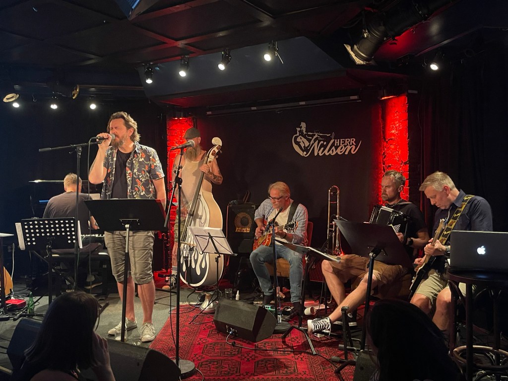Det er helheten er som er viktig her. Alt bygger opp om en stemning, ja, og nå er jeg tilbake til dette om et eget univers: Trekkspillet og gitarene til Frederik Bjørnstad, bassen til Torro Sollie, den elektriske gitaren til produsenten Lars-Jørgen Gabestad. Nevnte jeg trombonen til Arnt Martin Brynildsen? Når du tror det ikke kan bli blåere, så blir det selvfølgelig det.