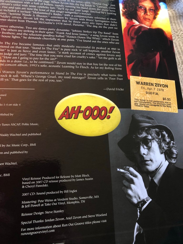 Da har jeg fått den i hus, den nye doble utgaven av Warren Zevons livealbum, «Stand In The Fire», spilt inn på legendariske i 1980. For meg er dette ei av de store liveplatene i rocksegmentet, helt der oppe med Dream Syndicates «Live At Raji’s» og «Weld» med Neil Young & Crazy Horse. Man kan alltid stille seg spørsmålet om slike deluxe-utgaver er nødvendige. Som Warren Zevon uttalte om de 10 sporene som nå er utgitt og som opprinnelig ikke var en del av denne liveskiva: «The dog ate the part we did not like». I 2007 kom det en CD-utgave med fire bonusspor, og nå har hunden kastet opp seks spor til. Men joda, jeg liker dem! Her får du en god del om denne liveplata, men også litt om annet Warren Zevon bedrev i sitt «Dirty Life And Times».